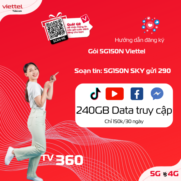 Gói cước 4G Viettel là các gói dịch vụ dữ liệu di động sử dụng công nghệ 4G LTE, mang đến tốc độ internet cao (lên đến 150Mbps tải xuống), phù hợp cho lướt web, xem phim, chơi game hoặc làm việc trực tuyến. Viettel cung cấp đa dạng gói 4G cho trả trước và trả sau, với giá từ 5.000đ/ngày đến hàng triệu đồng/năm, dung lượng từ 500MB đến hàng trăm GB. Nhiều gói 4G Viettel tương thích với 5G nếu thiết bị hỗ trợ, và thường kết hợp ưu đãi gọi điện, xem phim (TV360) hoặc mạng xã hội. Bạn cần sim 4G (nâng cấp miễn phí tại cửa hàng Viettel) để sử dụng. Dưới đây là tổng hợp các gói 4G Viettel phổ biến nhất năm 2025, dựa trên thông tin cập nhật từ Viettel Telecom.