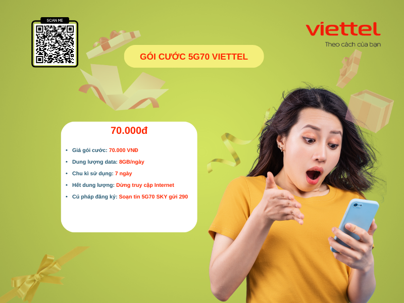 Gói 4G Viettel theo tháng với dung lượng cao từ 30GB đến 240GB, giá chỉ từ 70.000đ. Hướng dẫn đăng ký gói cước 4G Viettel đơn giản qua SMS, app My Viettel. So sánh gói 4G Viettel, mẹo sử dụng hiệu quả để tiết kiệm data và kết nối ổn định. Cập nhật ưu đãi mới nhất tại goicuoc5g.com.vn!