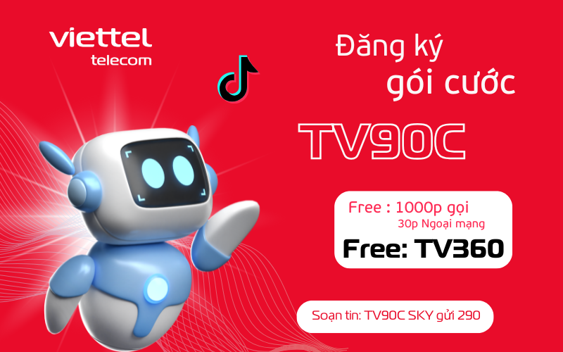 Gói cước TV90C Viettel là giải pháp hoàn hảo cho những ai cần dung lượng lớn và yêu thích giải trí trực tuyến qua ứng dụng TV360. Hãy đăng ký ngay hôm nay để tận hưởng ưu đãi hấp dẫn và trải nghiệm mạng 4G Viettel tốc độ cao!